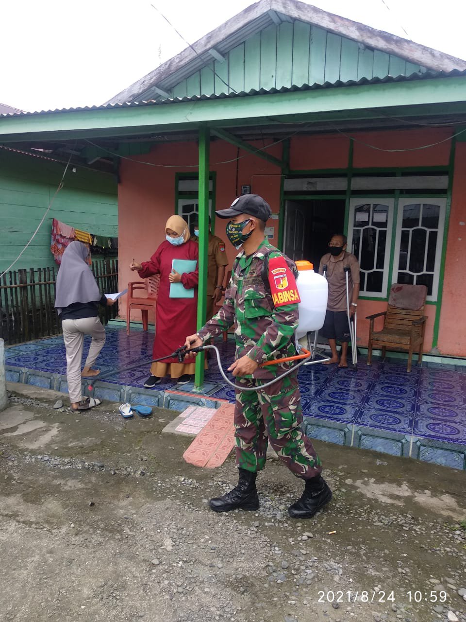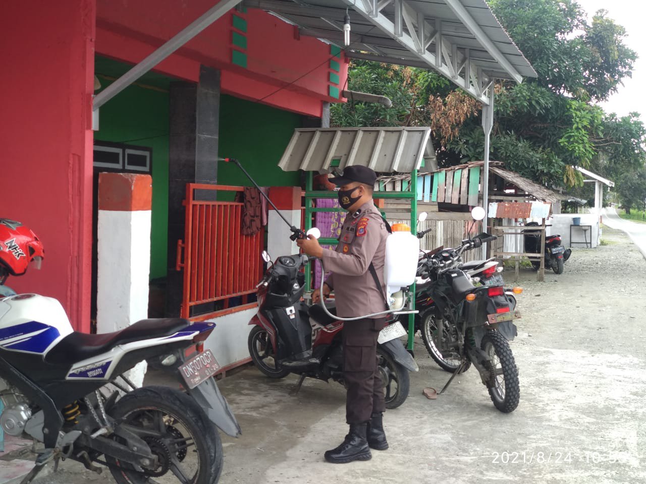 Babinkamtibmas Polsek Batui Aipda Usman bersama Babinsa, pemerintah desa dan tim kesehatan Desa Uso, Kecamatan Batui, Kabupaten Banggai, menyemprotkan cairan disinfektan, Selasa (24/8/2021).