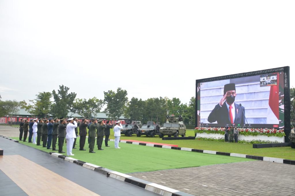 Pangdam I/BB Mayjen TNI Hassanudin, SIP, MM mengikuti upacara Peringatan HUT ke-76 TNI yang dilaksanakan secara sederhana dari Gedung A.H.Nasution Makodam I/Bukit Barisan secara virtual dengan Presiden RI Joko Widodo selaku inspektur upacara beserta Kabinet Indonesia Maju pada Selasa, (05/10/2021)