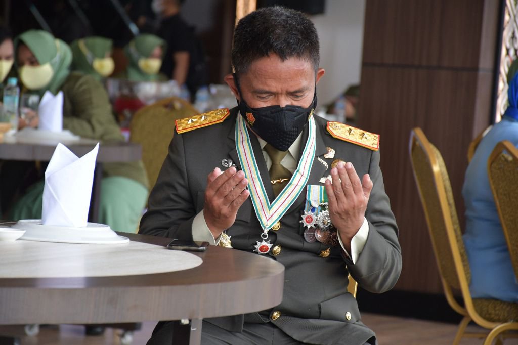 Kepada prajurit saya, “Pegang teguh komitmen jati diri TNI sebagai tentara rakyat, tentara pejuang dan tentara nasional yang professional, tingkatkan pembinaan teritorial dalam bingkai semangat Kemanunggalan TNI–Rakyat dengan senantiasa menjalin komunikasi yang harmonis dengan komponen masyarakat, serta jaga sinergitas TNI-Polri yang sudah terjalin dengan baik,” pungkasnya.