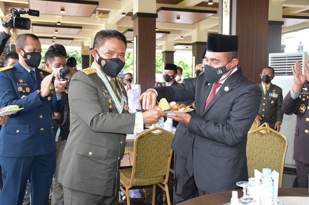 Tampak pula hadir mengikuti upacara virtual HUT ke-76 TNI tahun 2021, diantaranya Gubsu Edi Rahmayadi, Kasdam I/BB, Kapoldasu, Danlantamal I Belawan, Pangkosek Hanudnas III Medan, Walikota Medan, serta seluruh PJU di Kodam I/BB, Kosek Hanudnas III Medan, Lantamal I Belawan dan PJU Poldasu,