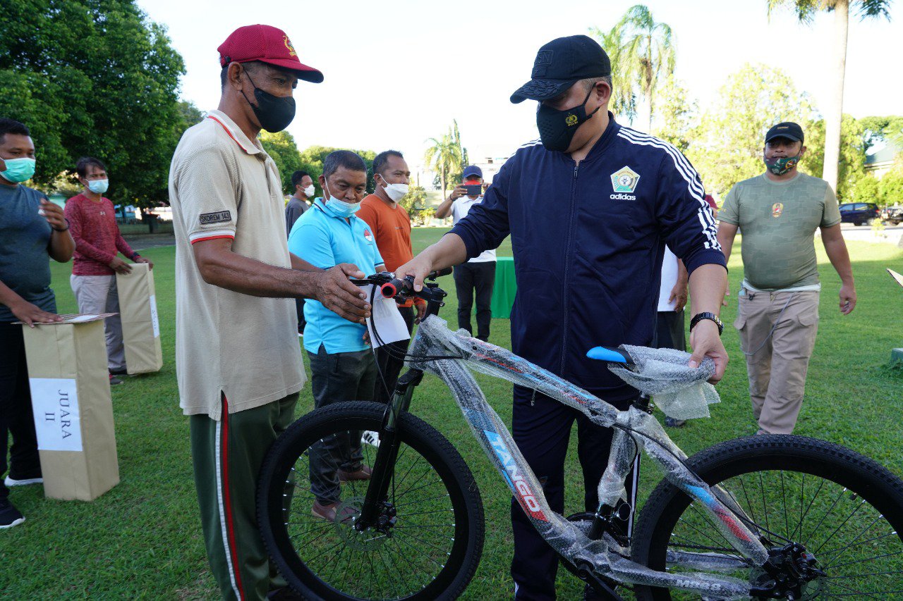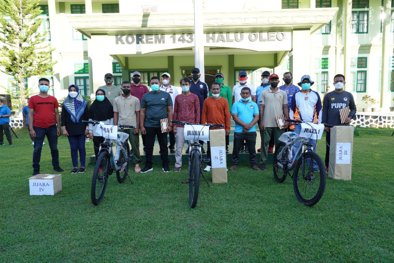 Turnamen olah raga Gate Ball dalam rangka HUT ke-76 TNI resmi ditutup, Danrem 143/HO Brigjen TNI Jannie Aldrin Siahaan serahkan 3 unit sepeda bagi sang juara.