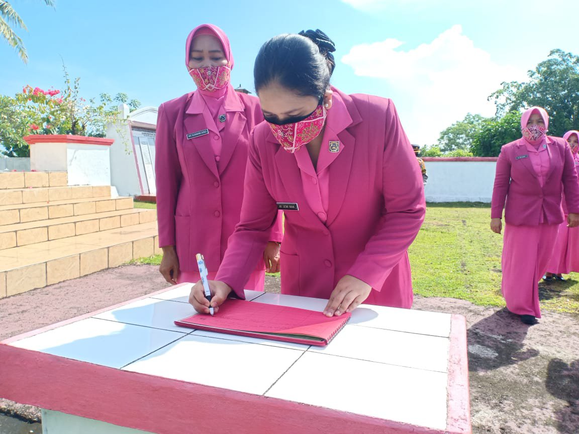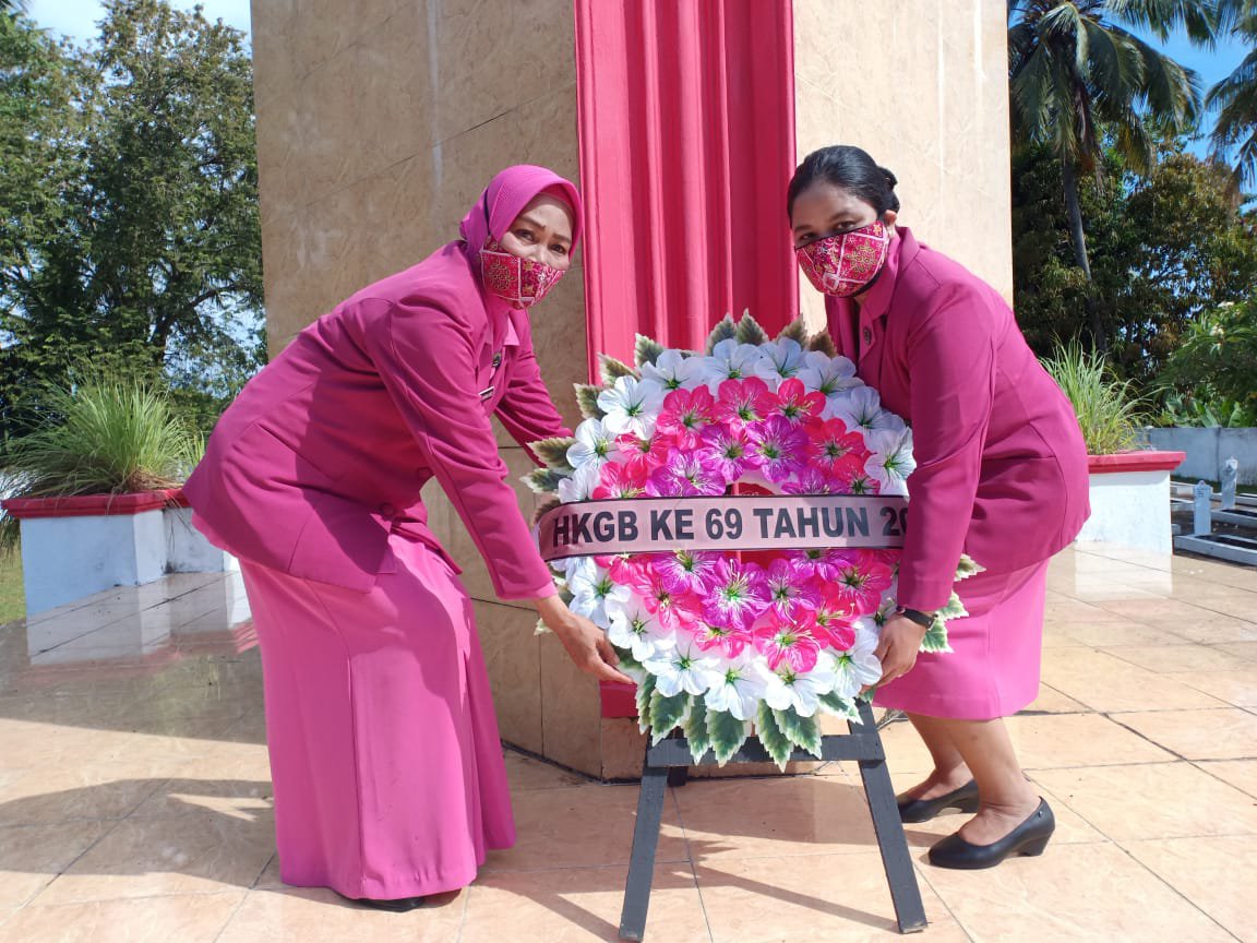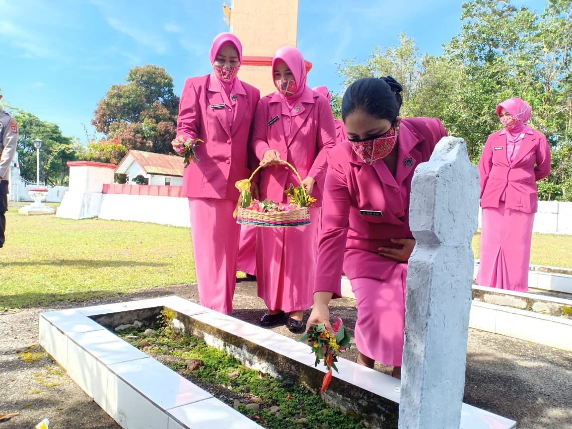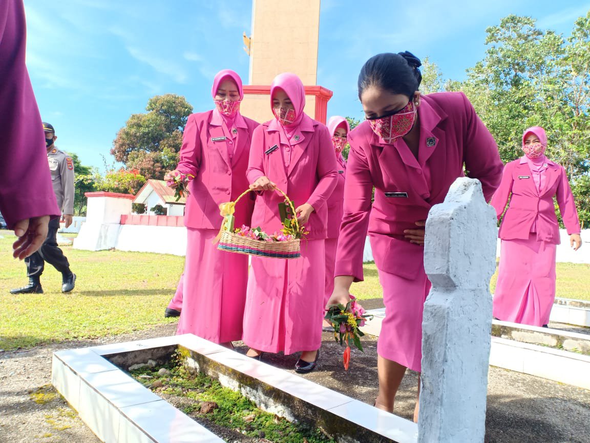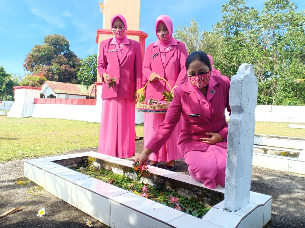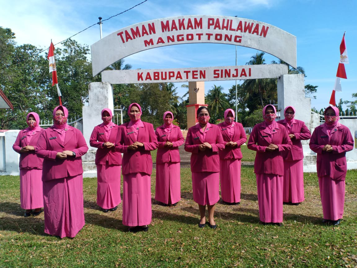 Dalam rangka Memperingati Hari Kesatuan Gerak Bhayangkari (HKGB) Ke- 69 tahun 2021 Bhayangkari Cabang Sinjai melakukan ziarah rombongan ke Taman Makan Pahlawan (TMP) Manggottong, di Desa Saukang, Kecamatan Sinjai Timur, Kabupaten Sinjai. Senin pagi (18/10/2021).