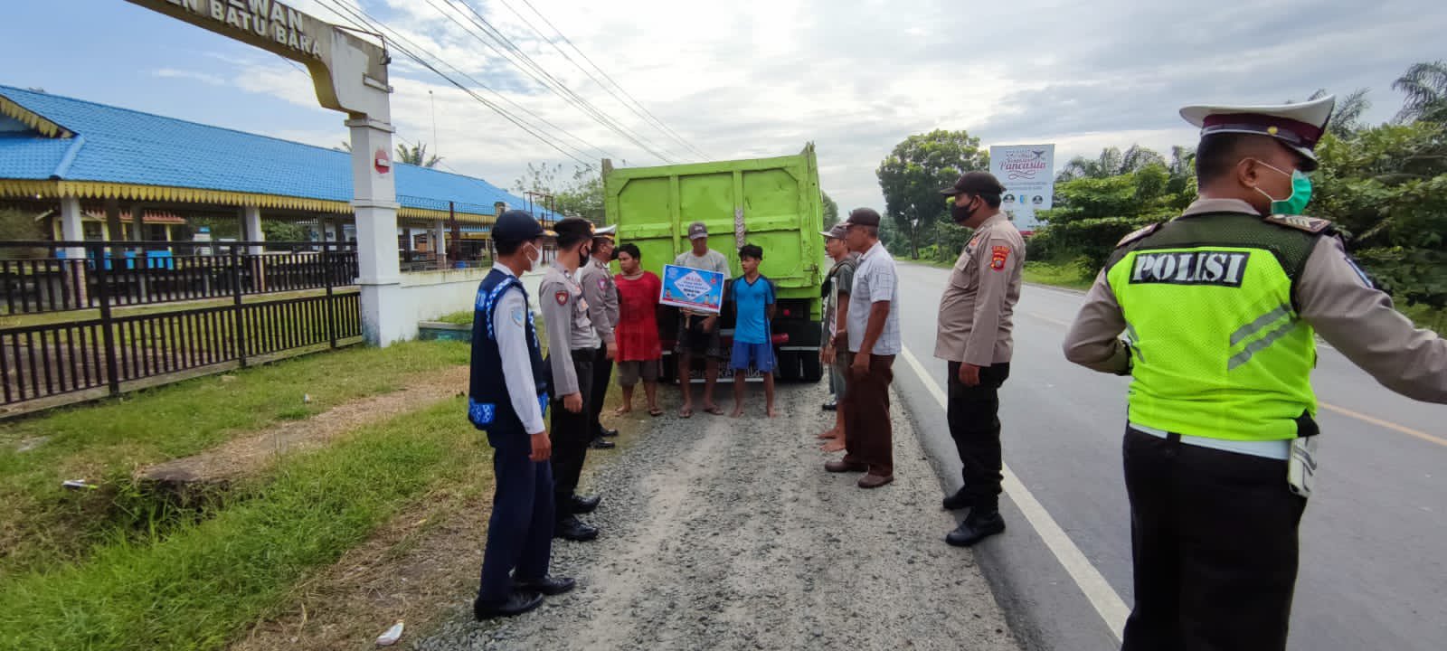Terpantau Media ini Para Personil Membagikan Masker kepada Masyarakat di Seputaran Depan Kantor Dishub Batu Bara Desa Petatal Kecamatan Datuk Tanah Datar Kabupaten Batu Bara Bagi Masyarakat dan Pengendara yang tidak menggunakan Masker.