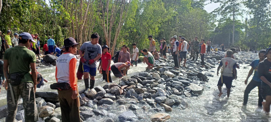 Sinergi masyarakat dan TNI POLRI itupun akhirnya dapat menyelesaikan pembuatan tanggul darurat dari tumpukan batu sungai, sehingga jalur penghubung kedua desa kembali dapat dilalui kendaraan.