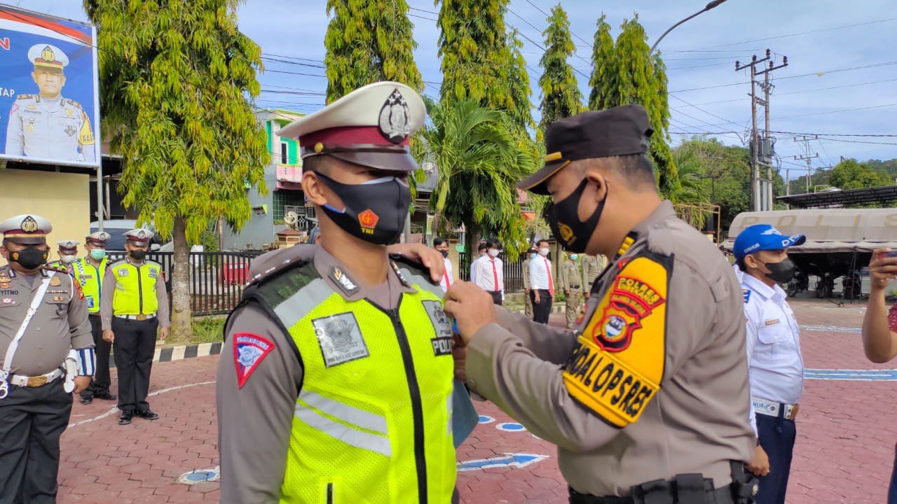 Penyematan Pita Tanda Operasi kepada perwakilan dari unsur TNI, Polri dan Dishub serta Satpol PP oleh Kabag Ops Polres Enrekang selaku Komandan Apel sebagai tanda dimulainya Operasi Zebra 2021 di wilayah hukum Polres Enrekang.