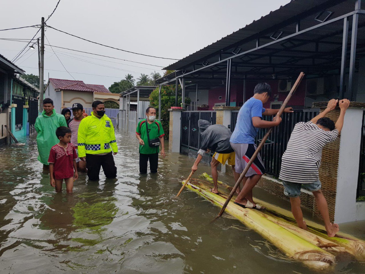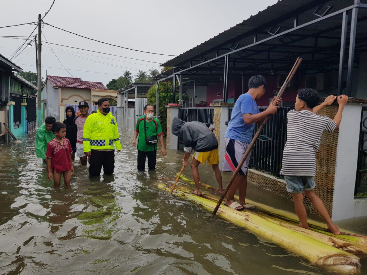 Pantauan Peliput, masyarakat yang terjebak banjir di Perumahan tersebut langsung dievakuasi oleh Personil Polri ke mesjid terdekat sambil menunggu air banjir menurun. Mereka juga terus siaga berada di lokasi membantu warga yang kebanjiran.