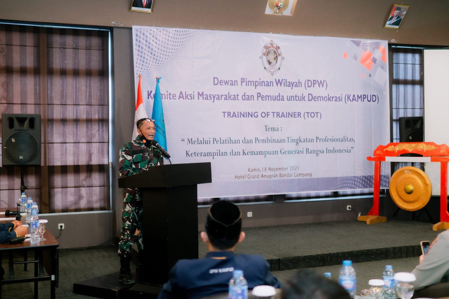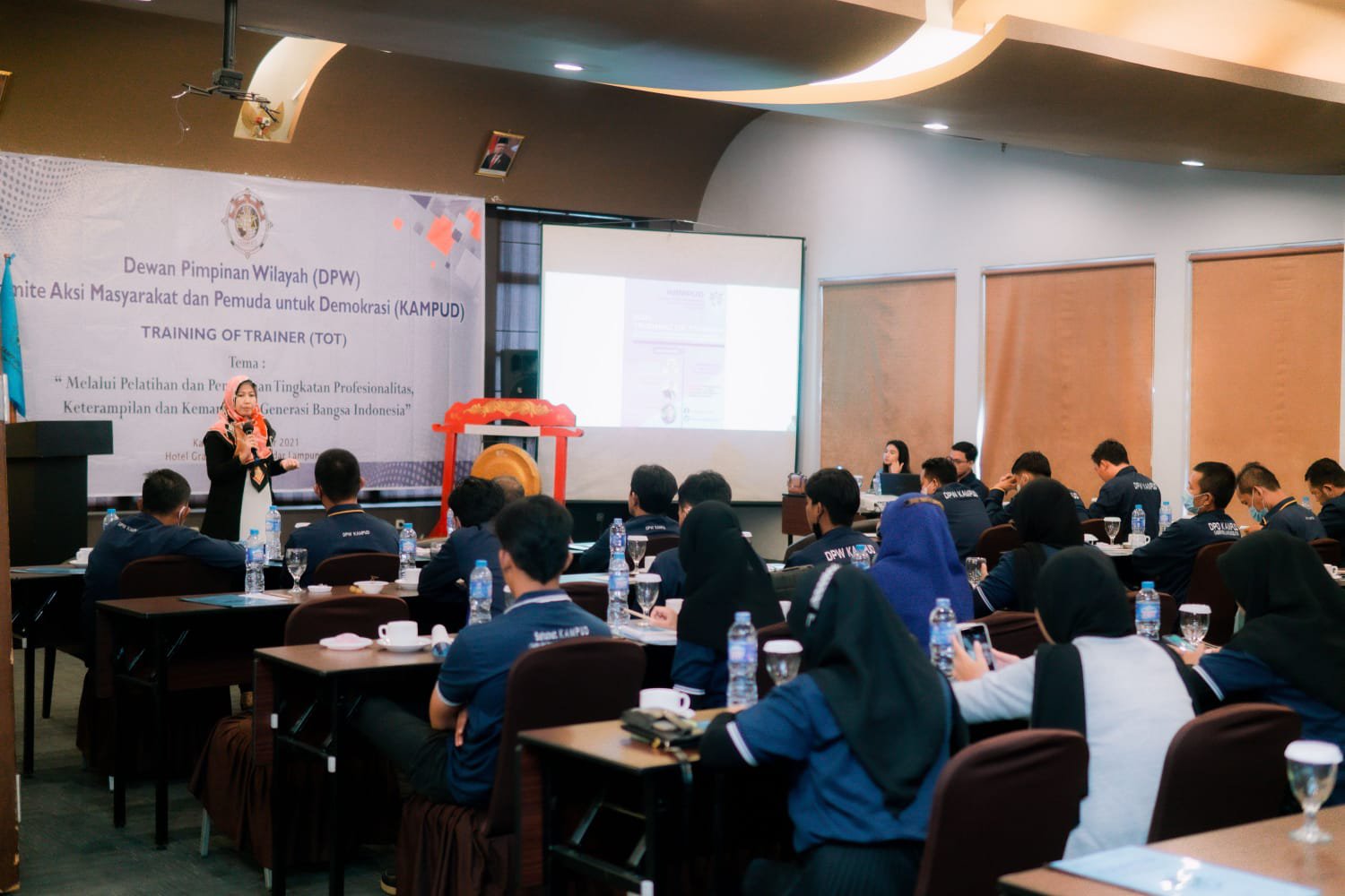 Komite Aksi Masyarakat dan Pemuda untuk Demokrasi (KAMPUD) menggelar acara Training of trainer yang dipusatkan di Hotel Grand Anugrah Bandar Lampung, pada Kamis (18/11/2021).