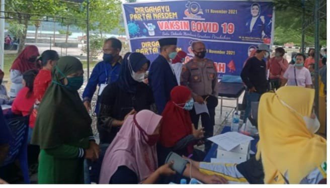Kegiatan Vaksinasi dan donor darah tersebut digelar oleh DPD Nasdem Touna dalam rangka memperingati Hari Ulang Tahun (HUT) ke-10 Partai Nasdem.