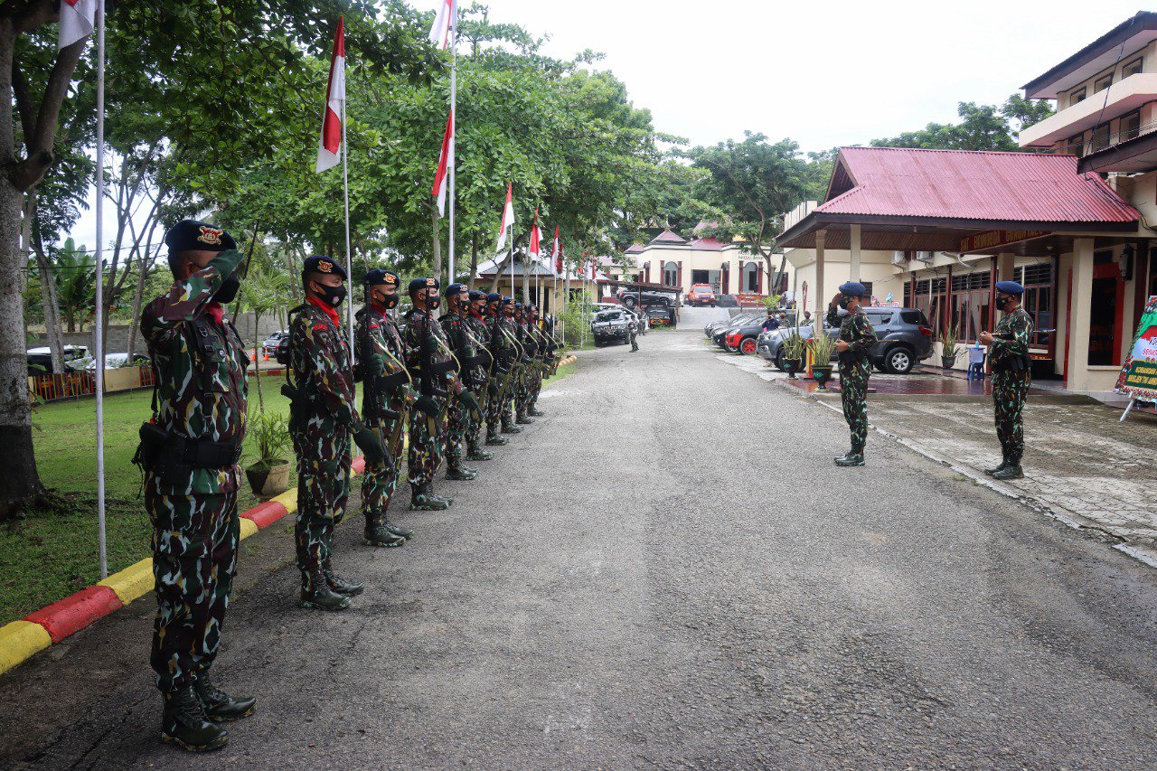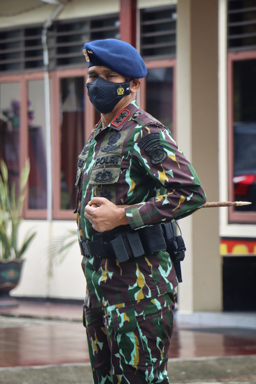 Upacara memperingati HUT Brimob Polri ke – 76 tahun 2021 di Mako Satbrimob Polda Gorontalo dihadiri Wakapolda Gorontalo Brigjen Pol. Drs. Pudji Prasetijanto Hadi, M.H., Kabinda Gorontalo Suyono SS, Dansat Brimob Polda Gorontalo Kombes Pol M Ridwan, Kasrem 133/NW Kolonel Inf Rudy Jayakarta Runtuwene, S.I.P. dan para Pejabat Utama Dari Satuan TNI-Polri.