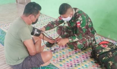 Anggota Satgas Pamtas RI-Malaysia Yonif 144/JY melaksanakan Pengobatan gratis ke warga di dusun entabak desa Senaning Kecamatan Ketungau Hulu Kabupaten Sintang Kalbar.