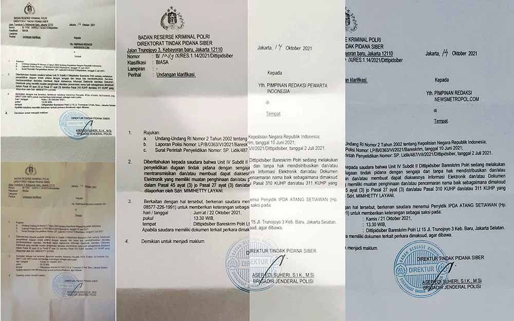 Panggilan klarifikasi dari Tipidsiber No 1288/X/RES 1.14/2021/Tipidsiber tertanggal 14 Oktober 2021 dilayangkan atas laporan Mimihetty Layani yang merasa nama baiknya dicemarkan, sebagaimana pasal 27 UU ITE, 310 dan 311 KUHPidana dengan pemberitaan tentang kisruh Keluarga Kapal Api. Panggilan kepada beberapa Pimred dan ketua organisasi wartawan yang menayangkan berita kisruh Kapal Api dilayangkan oleh Satker Dittipidsiber Mabes Polri ini dinilai sebagai upaya membungkam kemerdekaan pers sebagaimana diatur UU No 40 tahun 1999 tentang Pers.