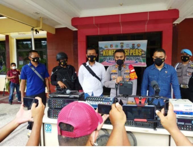 Bertempat di Mako Polres Parigi Moutong berlangsung kegiatan konferensi pers tentang keberhasilan Unit Buser Sat Reskrim Polres Parigi Moutong dan Tim Bajra Sat Sabhara Polres Parimo dalam mengungkap dan menangkap terduga pelaku pencurian mixer sound sistem dan perkengkapan ibadah mesjid lainnya serta kotak amal mesjid di Desa Tanalanto, Kec. Parigi selatan, dan Mesjid Desa Sausu,Kec.Sausu, Kab.Parigi Moutong yang terjadi tanggal 15 oktober 2021. Kegiatan dipimpin oleh Kapolres Parimo AKBP ANDI BATARA PURWACARAKA,SH,SIK didampingi Kabag Ops Polres Parimo AKP JUNUS ACHPAH, Kasat Reskrim Polres Parimo AKP DONATUS KONO, SH,SIK, Kanit I Sat Reskrim IPDA GIGIH WINADA,SH, dihadiri oleh para wartawan dari sejumlah media di Kabupaten Parigi Moutong. Dalam konferensi pers tersebut Kapolres Parimo memaparkan tentang kronologis tentang keberhasilan penangkapan terduga pelaku pencurian mixer sound sistem dan perkengkapan ibadah mesjid lainnya serta kotak amal mesjid di Desa Tanalanto, Kec. Parigi selatan, dan Mesjid Desa Sausu,Kec.Sausu, Kab.Parigi Moutong tersebut yang sangat meresahkan masyarakat Kab.Parigi Moutong. Dalam tempo yang singkat berhasil melakukan Penangkapan Terduga Pelaku Pencurian mixer dan rangkaian sound system masjid di desa tanah lanto Kab. Parigi Moutong dengan terduga pelaku inisial SA (38th), alamat Kab. Bualemo, Gorontalo.