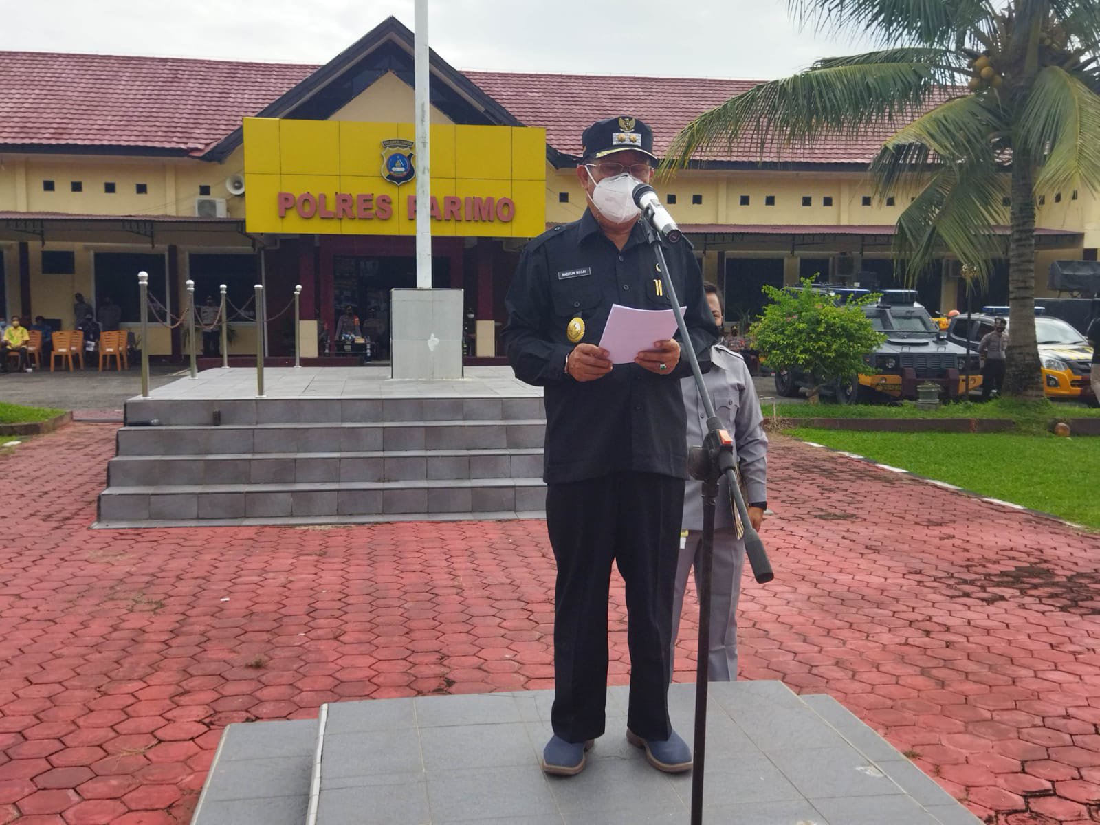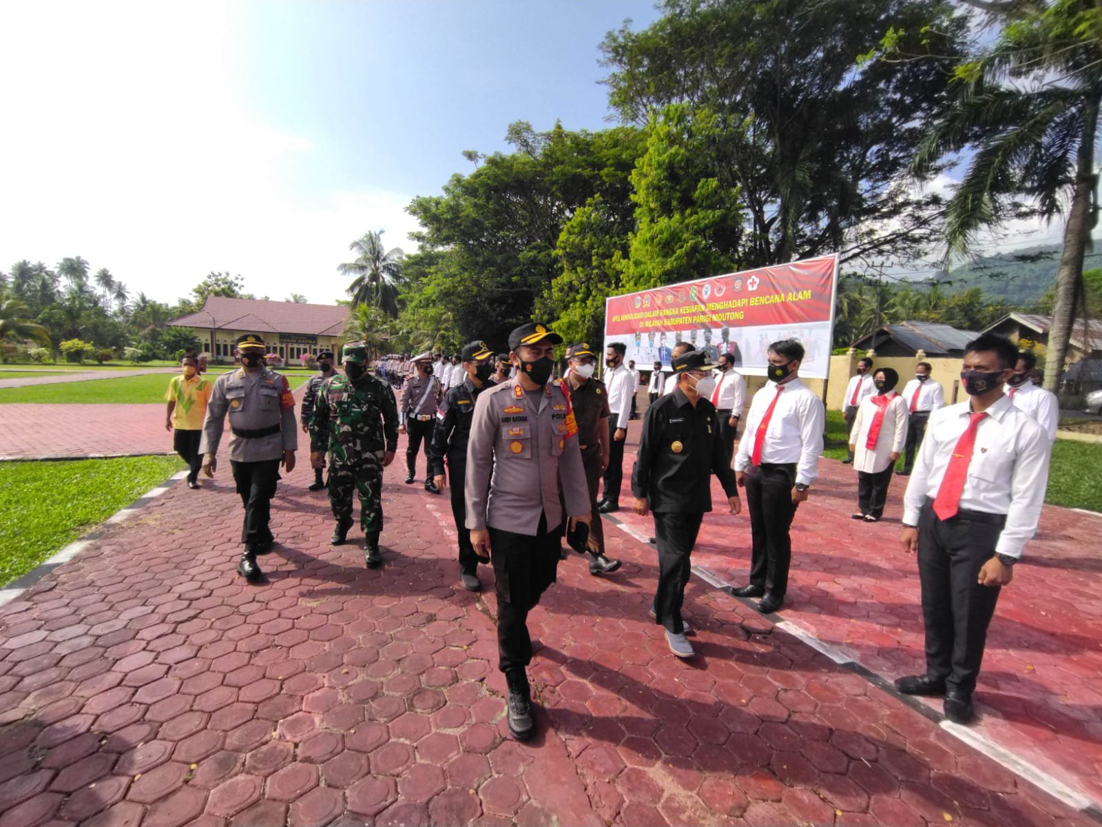 Selaku pimpinan apel yaitu Bupati Parigi Moutong yang diwakili Wakil Bupati Parigi Moutong H.BADRUN NGGAI,SE, Perwira Apel yaitu Kabag Ops Polres Parigi Moutong AKP JUNUS ACHPAH, Komandan apel yaitu KBO Sat Lantas IPDA ARMAN,SH, dihadiri oleh Kapolres Parimo AKBP ANDI BATARA PURWACARAKA,SH,SIK, Yg mewakili Dandim 1306 Donggala, Pabung TNI MAYOR INF.GATOT, Danpos TNI AL Parigi LETDA (P) ADITYA NUGROHO, Kajari yg di wakili TAUFAN,SH, Ketua PN yg diwakili oleh Wakil ketua PN YAKOBUS,SH, Waka Polres Parimo KOMPOL I WAYAN PASEK,S.SOS bersama para PJU Polres Parimo.