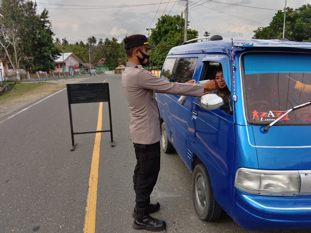 Himbauan pendisiplinan prokes yang dilaksanakan oleh personel Polres Bamggai secara mobile dengan menggunakan mobil patroli tetap dilakukan secara santun dan humanis.