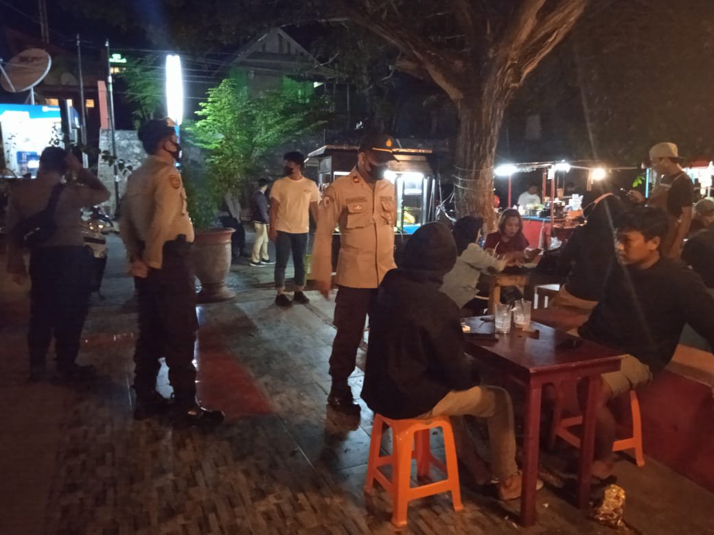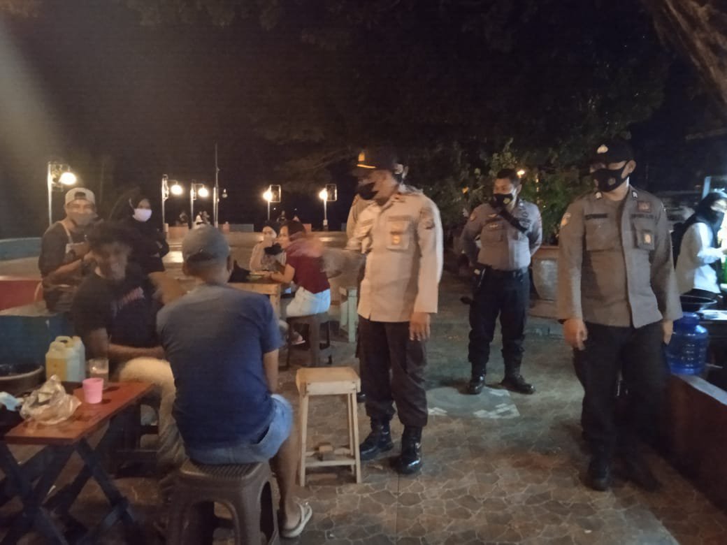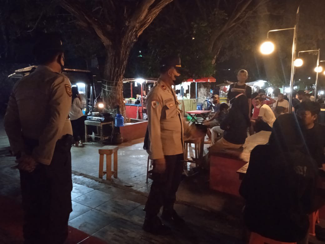 Dalam patroli ini juga petugas sekaligus mengimbau masyarakat yang sedang menikmati makanan agar tidak mengabaikan protokol kesehatan (prokes) khusunya penggunaan masker.