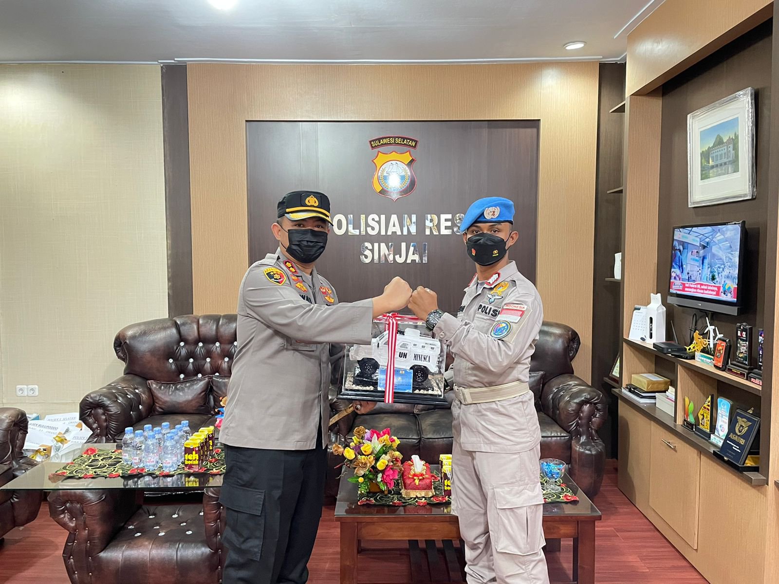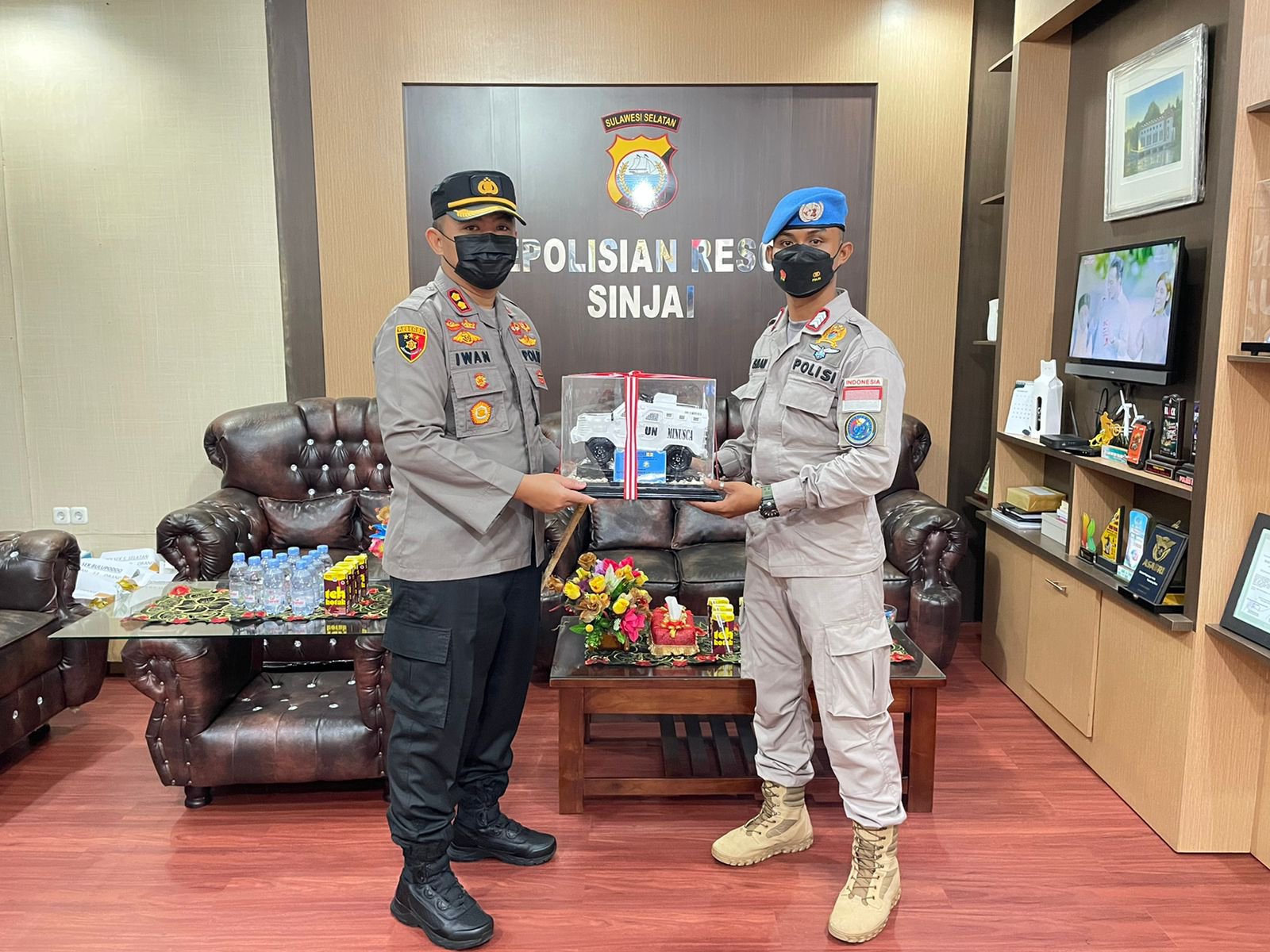 Kapolres Sinjai Akbp Iwan Irmawan S.Ik.,M.Si mengapresiasi prestasi dan pengabdian Bripka Jasman, SH yang telah selesai melaksanakan misi perdamaian PBB dengan baik.