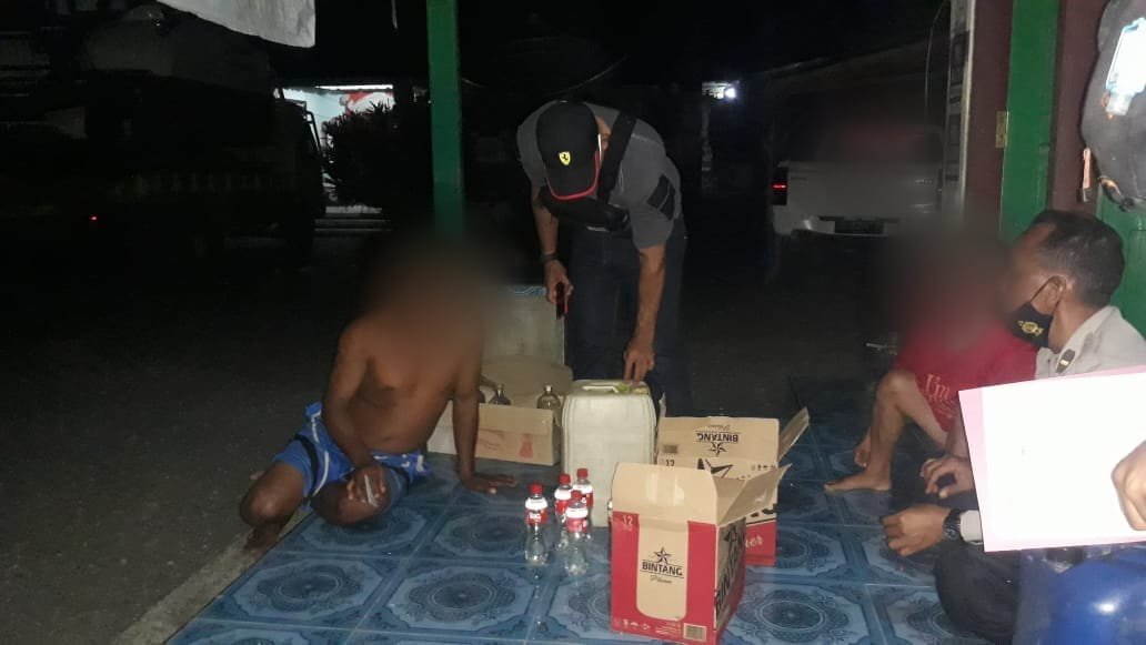 Kapolsek Toili AKP Candra SH, MH, bersama anggotanya merazia sejumlah kios yang diduga menjual minuman keras tanpa izin atau ilegal di Desa Sari Bhuana, Kecamatan Toili, Sabtu (23/10/2021) malam.